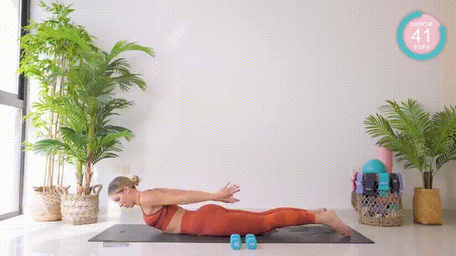 This final exercise targets your back and core without any weights needed. You’ll squeeze your shoulder blades like you’re trying to hold something between them.